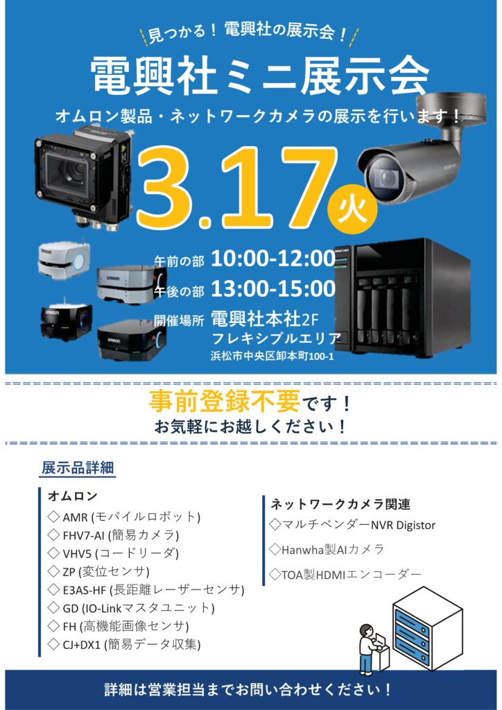 オムロン製品とネットワークカメラ関連製品のミニ展示会を開催します。事前登録 不要となります。ぜひお気軽にご参加ください!